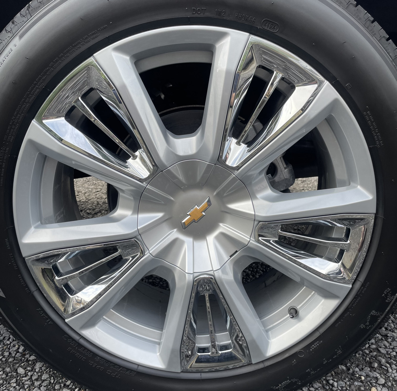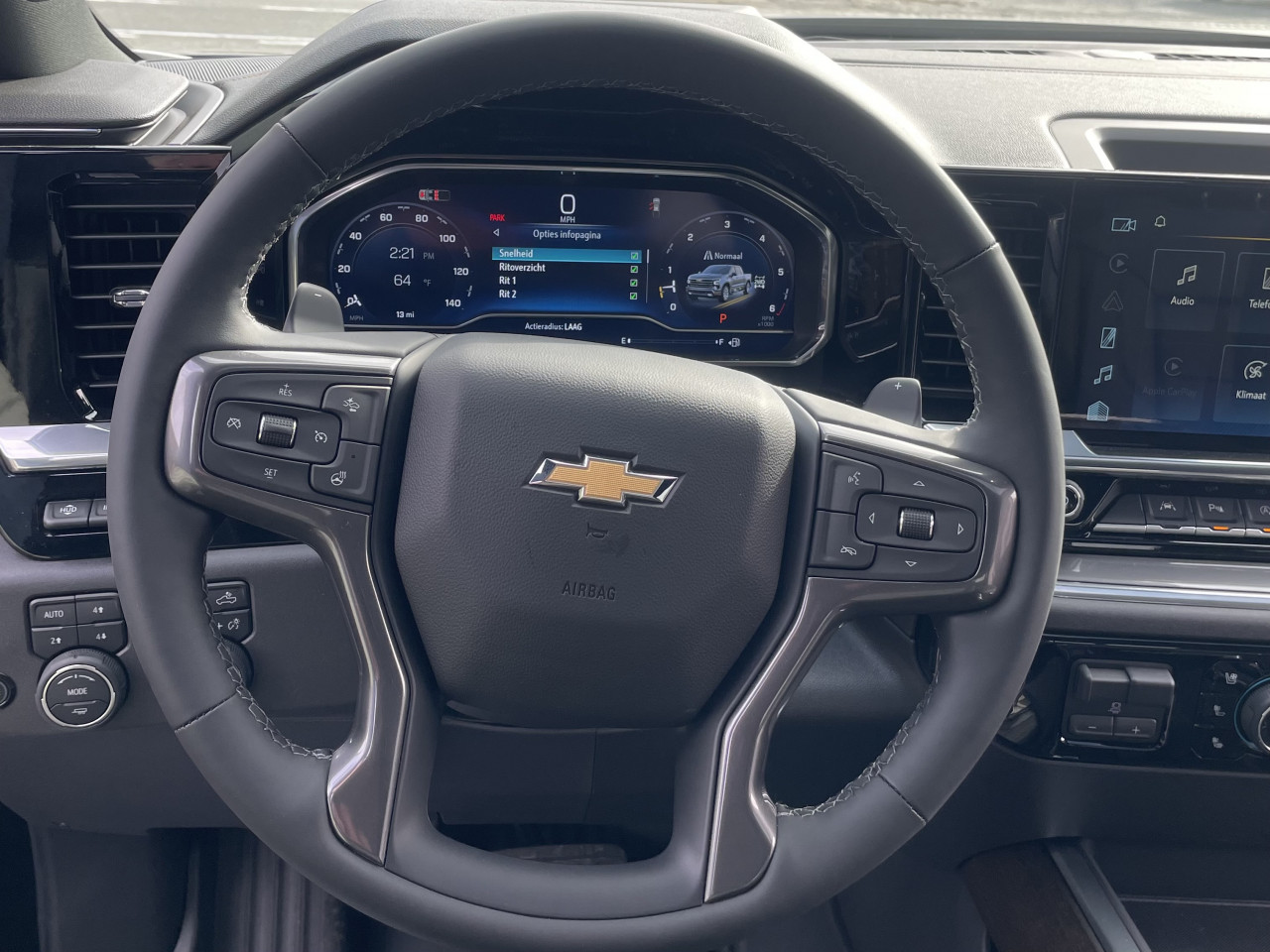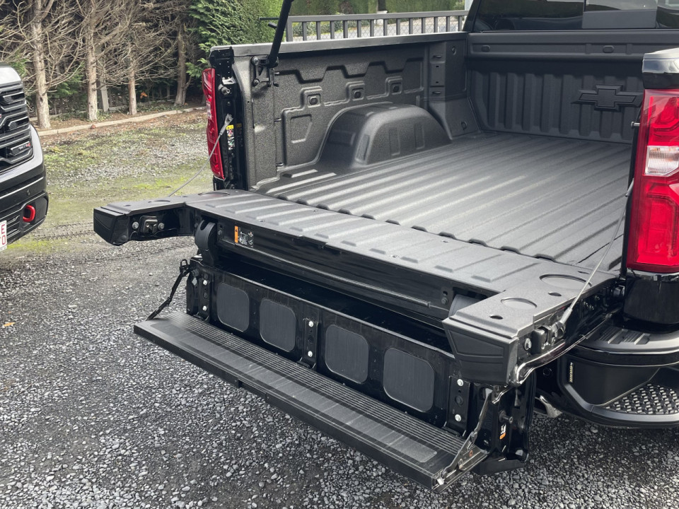 Seat adjuster, driver 10-way power including lumbar, Wheels, 20" x 9" (50.8 cm x 22.9 cm) High gloss Black painted aluminum (RD5), Glass, deep-tinted, Keyless Open and Start, Window, power front, drivers express up/down, Airbags, Dual-stage frontal airbags for driver and front outboard passengers, Seat-mounted side-impact airbags for driver and front outboard passenger, Head-curtain airbags for front and rear outboard seating positions, Includes front outboard Passenger Sensing System for frontal outboard passenger airbag, Floor liners, with removable carpet inserts, rear & front, CornerStep, rear bumper, Air conditioning, dual-zone automatic climate control, Center Console, floor, Mirrors, outside heated power-adjustable with painted caps, Auto-locking rear differential, Audio system, Chevrolet Infotainment 3 Premium, Hill Descent Control, Wireless Charging, Seating, heated driver and front outboard passenger, Steering wheel wrapped, heated and with mounted controls, Adaptive Cruise Control, Transmission, 10-speed automatic with Electronic Transmission Range Selector (ETRS), electronically controlled with overdrive, tow/haul mode and steering column paddle shifters, Steering column, manual tilt and telescoping, Active Exhaust, Dual, sport-mode enabled, Skid Plates, Wireless phone projection, Hitch Guidance with Hitch View, Tailgate standard function manual with EZ Lift, includes power lock and release, Up-level Rearseat with Storage Package, 60/40 folding bench, Fog lamps front, LED Headlight IntelliBeam with automatic HighBeam on/off, USB ports, 2, Charge/Data ports located inside center console, USB ports, rear, dual, charge-only, Front and Rear Park Assist, Following Distance Indicator, Forward Collision Alert, LED Cargo Area Lighting, Rear Cross Traffic Braking, Lane Keep Assist with Lane Departure Warning, Automatic Emergency Braking, Front Pedestrian Braking, Rear Pedestrian Alert, Audio system feature, 6-speaker system, HD Surround Vision.